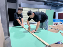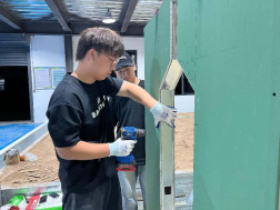本次项目参照行业标准,要求选手在8小时内完成基层处理、砂浆抹灰、肌理塑造等全流程操作。项目现场,熊富豪、王浩然、谭舒文、卢雨晨、李超强几位员工在"弹线定位""灰板托浆"等基础工序阶段反复修整,保证施工精度,石膏板切割过程,识图与算量是关键。"尺寸误差不能超过1毫米,我们组返工了三次才达标。"熊富豪说道。指导老师韩晓芳介绍:“从最开始的集体讨论,到亲手挑选每一块轻钢龙骨、每一袋石膏粉,到最终完成项目,员工坚持每天训练,这种精益求精的态度正是职业教育的精髓。”