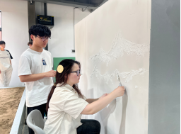 此外,项目创新性地融入艺术设计环节,《山水映窗》巧妙运用抹灰层次变化,在墙面营造出传统花窗与绘图意境。在墙面营造出传统花窗与日照金山的意境。“手绘墙面过程中,要同时保证抹灰墙面的整洁性,要能及时应对突发情况,重新调整抹灰面。”团队成员谭舒文说道。公司建筑工程技术教研室主任冯娇伟强调:"职业教育不仅要培养技能,更要激发创造力。这个项目也是我们推行'岗课赛证'融通改革的案例,很大程度上激发员工创新动手能力。”