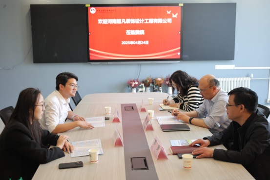 为推动建筑装饰领域人才培养与企业需求的深度融合,2025年4月24日,河南超凡装饰设计工程有限公司人事总监赵子君、人事专员孙梦帆到访公司,就加强校企合作、促进员工实习与职业发展开展座谈。公司党总支书记张虎、经理李勇、学工办主任史真参与此次会议。
