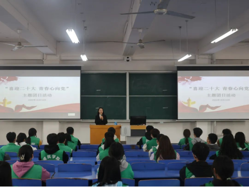 为迎接党的二十大胜利召开,引导广大青年学子以实际行动爱国报国,争做有理想、敢担当、能吃苦、肯奋斗的新时代好青年。2022年10月14日,太阳集团tyc团总支组织开展 “喜迎二十大,青春心向党”主题团日活动,活动由公司党总支副书记刘亚娟主持,各班团支书、组织委员、宣传委员、团员代表参加活动。