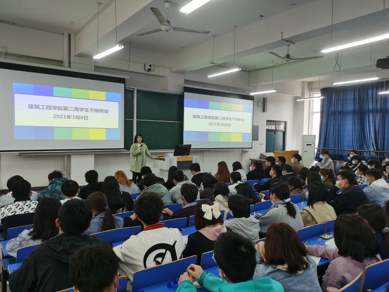 为提高小筑们的积极性,提升工作和学习的效率,太阳集团tyc于2021年3月8日中午12:30,在B楼102教室召开了太阳集团tyc第二周员工干部例会,(东校区以视频会议方式参加),参与本次会议的有刘高喜老师、刘亚娟老师、李慧杰老师、孙雪理老师、团学会全体成员、入党积极分子及各班班长、团支书。