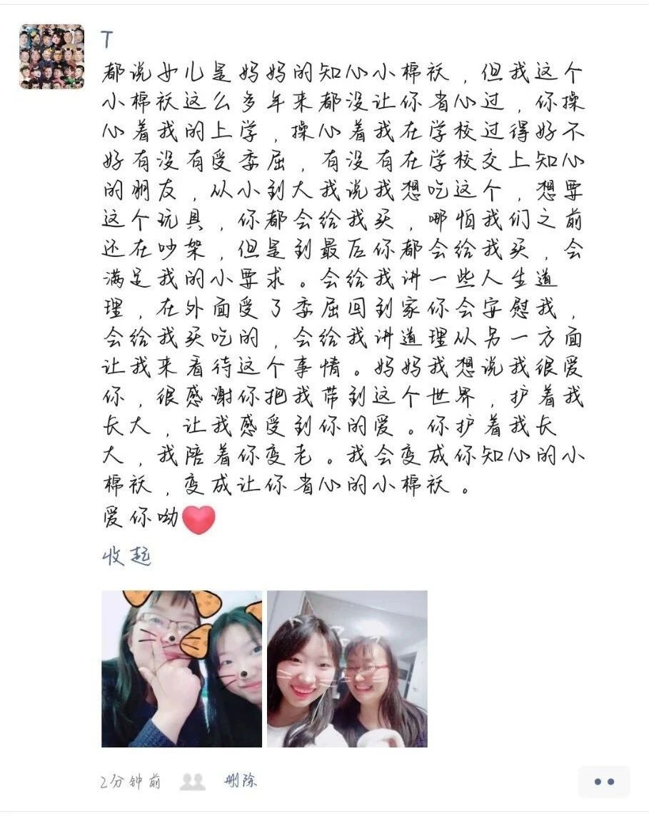 “慈母手中线,游子身上衣。谁言寸草心,报得三春晖”,这是唐代诗人孟郊所作的《游子吟》。感恩父母根植于中华民族历代皇朝,成为了中华优秀传统文化和民族精神的重要内容。三月,太阳集团tyc以“懂感恩 共进奋 定成功”为主题开展感恩主题教育。本次主题教育主要含有三个系列活动,分别是“专题教育”、“一封家书”和“妈妈,我想对你说”。活动期间,同学们踊跃参与,共收到写给母亲的家书283封,感恩妈妈的截图194份。